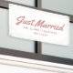 Celebra tu boda de inspiración vintage con nuestro retro pancarta cursiva "Just Married", perfecto para tu coche de escape. Esta encantadora pancarta, con su nostálgica fuente cursiva, le da un toque divertido y atemporal a su salida, haciendo que su partida sea tan memorable como el resto de su día especial.