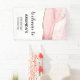 Banner de bienvenida de cumpleaños con un diseño elegante y moderno. Una acuarela rosa de color rosa con un sutil aspecto de ágata de mármol y una cinta purpurinoso dorada en medio.