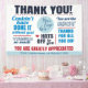 Dar las gracias con estilo. Este fabuloso diseño de tipografía presenta un mensaje de agradecimiento de color azul y rojo. Un banner de logotipo personalizado maravilloso para mostrar su agradecimiento. Sería perfecto para voluntarios, empleados, personal de enfermería o maestros de oficina.