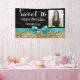 Arco de la turquesa verde azulada e imagen azulverdes de la cinta. Añada la imagen de la foto de su chica de encargo del cumpleaños a esta impresión impresionante de la chispa del purpurina del oro con el arco. ¡Bonito bling para el chica femenino de la diva de dieciséis años! Fondo negro adorable con la impresión caprichosa. Celebre a la fiesta del cumpleaños de la señora joven en estilo con esta bandera conocida personalizada impresa personalizado.