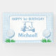 Lona Agujero en un fiesta de golf de gingham azul feliz