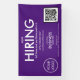 Atraer nuevas contrataciones con facilidad con este personalizable moderno Púrpura AHORA CONTRATANDO a tiempo completo y a tiempo parcial posiciones de banner al aire libre. Actualice de forma sencilla el logotipo de su empresa, el código qr del sitio web y la información de contacto de la empresa.