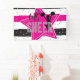 ¡Vamos a alentar! Cartel animador de la fiesta de cumpleaños en rosa, purpurina plateado y negro.
