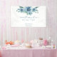 Banner de bienvenida personalizado "Algo azul antes de que yo haga" Bridal Shower con flores de acuarela y tipografía de escritura elegante.