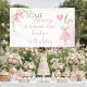 Crea un hermoso punto focal para la celebración de tu bebé con este banner de vinilo personalizado "Some Bunny Is Turning One". Con un conejo de acuarela en un vestido rosa suave, delicados acentos florales y un lazo rosa clásico, este encantador banner de cumpleaños es perfecto para decoraciones de fiesta, mesas de postres, fondos para fotos y celebraciones de cake smash.