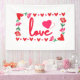 Esta pancarta muestra la palabra "Amor" en una fuente de impresión única con letras rojas y contorno rosa dentro de un diseño de estilo rectangular con corazones temáticos rojos y rosados, rosas y corazón de estilo fresa en dos esquinas en este tema del Día de San Valentín. Esta pancarta tiene impresión de un solo lado, medidas seguras para exteriores de 4 "x6", está hecha con un acabado mate elegante y es resistente a la decoloración y al desgarro para uso en interiores o exteriores, excelente para anunciar cualquier cosa, desde cumpleaños hasta graduaciones, bodas y aniversarios. Bordes doblados y soldados térmicamente para un acabado limpio, las pancartas exteriores se pueden comprar con ojales de metal.
