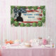 Welcome your hero home in red, white, and blue style with this bold patriotic banner. Featuring a flowing American flag backdrop, camouflage balloon border, military dog tags, and a silhouette soldier, this banner honors their service and celebrates their return with pride.