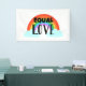 Esta obra de arte presenta un arcoiris dibujado a mano, nube y texto "Amor igual".