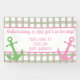 Bienvenidos a su ducha náutica con estilo, con este divertido cartel de personalizable. Tanto el lema "Anchors away" como el mensaje de bienvenida pueden ser personalizados con tu propio texto. Los gráficos de anclaje rosa y verde se encuentran en un fondo de guijarros blanco, rosa y verde para un aspecto náutico clásico.