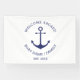 Nombre de barco personalizado o apellido de familia, Bienvenido a bordo, ancla náutica azul marino y texto blanco para hogar o negocio personalizado pancarta letrero.