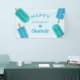 Diseñado para coincidir con las invitaciones a la fiesta de cumpleaños de nuestros niños, este bonito cartel personalizado incluye palitos verde azulados y azules con las palabras "Feliz cumpleaños [nombre]" en el centro con letras retro, adornadas con un corazón.