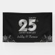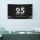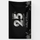 Números de plata modernos para el 25º aniversario del boda en un fondo negro y flores plateadas. Puede cambiar el color de fondo