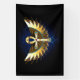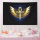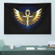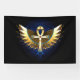 El tobillo egipcio dorado con alas estampadas y brillantes sobre un fondo negro. Símbolo mágico.