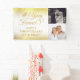 Celebrate any wedding anniversary with this personalized gold and white photo banner sign featuring an elegant gold calligraphy script typography design # YEARS INTO FOREVER for their years married and accented with gold interlocking linked hearts and confetti. The title is editable to use for any year anniversary. Contact the designer via Zazzle Chat or makeitaboutyoustore@gmail.com if you'd like this design modified, on another product or would like coordinating items.