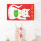 Esta impresionante pancarta de Año Nuevo chino muestra una imagen gráfica de un afortunado gato oriental blanco ondeando. El gato tiene hermosos ojos de oro y lleva puesto un medallón de oro en el cuello. El gato tiene orejas y bigotes rosas. Este lindo gatito sostiene una ficha de oro con entrada de jade verde y un mensaje en texto dorado que dice "Buena suerte". Hay texto personalizado para que pueda incluir un mensaje.