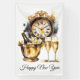 ¡Anda en Año Nuevo con elegancia! Este cartel de Año Nuevo Feliz marca el tono de una divertida celebración. La decoración, en un estilo acuarela, es muy refinada, en tonos negros y dorados, con un reloj que va contando hasta medianoche, dos copas de champán y una cubeta de champán helada, prometiendo una noche inolvidable. Eleva tu evento y deja una impresión duradera con este diseño atemporal y elegante. ¡Saludos a una noche de alegría, risas y un espléndido Año Nuevo por venir!