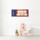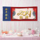 Patrón chino en tono azul en ambos lados opuestos con farolillos rojos, ideogramas chinos rosa pálido como fondo, gran dorado 2021 + dos pequeño papel dorado Ox cortado (imagen impresa) + deseos en chino e inglés. Diseño en banner rectangular (2,5' x 6'). Tarjeta de saludo, postal y otras tarjetas planas.