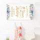 Pancarta de cumpleaños personalizado personalizada para cualquier cumpleaños de edad para ella con un diseño de tipografía de escritura retro editable para el número de AÑOS EN EL RECORRIDO para su edad que incorpora su año de nacimiento dentro del diseño, bordes de ramo florales en colores de azul, rosa y blanco acentuados con vegetación y hojas de oro y el texto de su personalizado. AYUDA: Para obtener ayuda con la modificación/personalización del diseño, el cambio de color, el redimensionamiento, la transferencia del diseño a otro producto o si desea coordinar elementos, póngase en contacto con el diseñador ANTES DE PEDERLO a través de Zazzle Chat o makeitaboutyoustore@gmail.com.