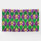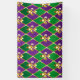 joyas, fondo del Mardi Gras de rhombus violeta y verde, lirios dorados decorados.