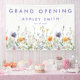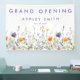 Este diseño tiene un borde acuático de flores silvestres en tonos vivos de morado, verde, naranja y oro. Personalice con su nombre e información comercial.