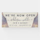Banner de Apertura del Salón Iridescente Purple Gold Glam Glitter. Este diseño presenta una fuente de estilo de letra script clásico y elegante sobre un hermoso fondo de destellos iridiscentes modernos. Perfecto para un salón de belleza, estilista de cabello, artista de maquillaje o cosmetólogo.