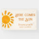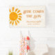 ¿Estás planeando una ducha de bebé para niños? Este bonito cartel de ducha de bebé está decorado con un sol de color amarillo y dice "Here Comes The Son" (Aquí viene el hijo) en una elegante tipografía retro con un suave fondo crema. Personalizable fácil. Acuarela original © Michele Davies.