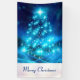 Cartel con un árbol de Navidad decorado con vibrantes luces de feriado eléctrico azul. Deslumbrando y reluciendo con alegría festiva.