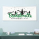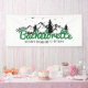 Haz que la fiesta de soltera en el campamento se destaque con este banner que presenta montañas, pinos y encanto rústico. Este diseño inspirado en el aire libre añade un toque divertido y temático de la naturaleza a tu celebración. Personalízalo con el nombre de la novia para un detalle único que mejore la decoración del evento.