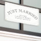 Este clásico diseño "Just Married" es un divertido complemento al coche de escape de la pareja.