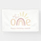 Este boho arco iris y el sol de la bandera de primer cumpleaños es perfecto para una fiesta de cumpleaños de primavera o verano. El arcoiris monocromo y los rayos solares son delicados y dulces para tu pequeño. ¡Simplemente personalizar este cartel por un acento de cumpleaños adorable y veraniego!