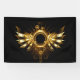 Areas mecánicas brillantes, con engranajes y banner redondo de latón. Steampunk
