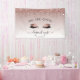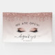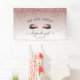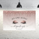 Infórmese a los clientes de que su salón de belleza está abierto con esta elegante pancarta, en la que se ve el ilustracion de un par de párpados dorados rosas brillantes con largos azotes negros sobre un fondo oscuro y subió, coronada por un borde de un rosa purpurina que gotea imitación de oro. Las palabras "¡ESTAMOS ABIERTOS!" (o el texto de su elección) se alzan sobre los ojos en grandes letras sans serif negras. Personalizar el signo con el nombre de su negocio en escritura a mano en negro con los cambios al principio y al final, y tu información de contacto o línea de etiqueta en letra sans serif negra. (Para mantener los cambios, reemplace sólo las letras de esos campos de texto, dejando los símbolos en su lugar.)