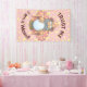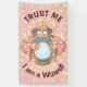 Viejo mago con capa rosa mirando la bola mágica de cristal.