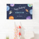 Bienvenidos a nuestros pequeños invitados de cumpleaños con esta bonita pancarta de cumpleaños de niños con temática de sistema solar de personalizable, con ilustraciones acuáticos de la galaxia, estrellas, planetas, un barco con cohetes y un astronauta. Perfecto para los niños, que aman la explosión de una aventura en el espacio exterior en su cumpleaños. Personalízalo con el nombre del niño o chica especial y utilice la herramienta de edición para cualquier ajuste adicional al tamaño y la ubicación del tipo de letra. No dude en ponerse en contacto con nosotros en Zazzle si necesita ayuda para la personalización.