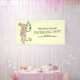 El conejo de Pascua sopla los huevos de Pascua mientras que el pequeño pollo es el público.