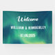 Moderno, elegante, Aurora Borealis, auroras boreales, pancarta verde Boda. Perfecto para recién casados. Puedes personalizarlo con los nombres y fechas de la novia y el novio.