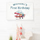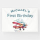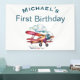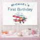 El diseño presenta un banner sencillo y minimalista con nombre de personalizable y edad con una imagen de un avión de biplano rojo acuarela rodeado de nubes. Personalizar con tu pequeño nombre de aviador. Perfecta decoración personalizada de banners para fiestas de cumpleaños. Póngase en contacto con nosotros antes de realizar un pedido para obtener más personalizaciones. Gracias por visitar nuestra tienda. Aumenta el derecho de autor en diseños de estilo. Todos Los Derechos Reservados.