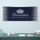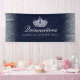 Azul con banner fiesta purpurina Quinceanera. Diseñado con purpurina de plata brillante acentuado con una corona de diamante brillante y de gema de zafiro. Esta bonita bandera es un complemento perfecto para tu decoración de quinceañera.