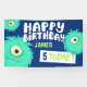 Un banner de cumpleaños brillante y divertido para los chicos. Ojo que atrapa azul y verde. Personalizar con su nombre y edad.