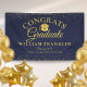 Un elegante banner de graduación que presenta los detalles de tu graduado en tipografía chic sobre un fondo de azul marino y dorado brillante. Diseñado por Thisisnotme©