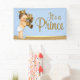 Prince Teddy Bear Baby Shower Banner con adorable morena príncipe del pelo oscuro usando pañal, pantuflas y corona sosteniendo un lindo oso de peluche sobre un hermoso fondo azul bebé y oro. Este banner de la ducha bebé azul y dorada se personaliza fácilmente con tu texto en el estilo de letra y color y la redacción de tu elección. También puede cambiar el color de fondo. Las palabras de Su príncipe no son texto. son gráficos y se pueden borrar para agregar su propio texto.
