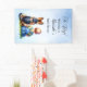 Pancarta personalizada de la ducha de bebé con un niño pequeño y dulce sentado al lado de un pastor alemán. arte de color azul y verde bonito.