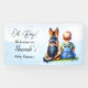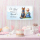 Pancarta personalizada de la ducha de bebé con un niño pequeño y dulce sentado al lado de un pastor alemán. arte de color azul y verde bonito.
