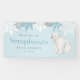 Tire la ducha de bebé con la temática de invierno más agradable con esta adorable decoración personalizada de la pancarta de la ducha de bebé oso polar. Bienvenido a sus huéspedes con esta pancarta de diseño de copos de nieve azul, blanco y purpurina plateado. Esta pancarta de ducha de oso polar es completamente de personalizable. Para editar el texto, haga clic en "personalizar esta plantilla". Los gráficos usados en este diseño fueron dibujados a mano por OhMyStarling, convirtiéndolo en una pieza única para tu tema de la ducha de bebé oso polar en invierno.