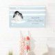 Lona Baby Shower de color gris azul pingüino