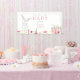 Banner Baby Shower de Conejo de Acuarela. Chica. Flores silvestres coloridas. Rosa.