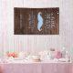 Este cartel de ducha de bebé adorna a los huéspedes con un bigote azul y un fondo rústico de madera. Bienvenidos al nuevo Pequeño Hombre con estilo.