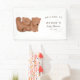 Banner de bienvenida con el tema de los osos gemelos pequeños con ilustracion de un cachorro con una hoja verde a ambos lados. Perfecto para una ducha de chica o niño en otoño.