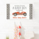 Banner de ducha de bebé de Red Race Car con coche de carreras rojo vintage.