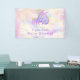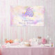 Adorable dragón bebé púrpura y rosa pastel durmiendo tranquilamente rodeado de confeti purpurina de oro en esta bonita pancarta de ducha de bebé de personalizable. Ideal para una ducha de bebé con temática de dragón o una ducha de bebé con temática de fantasía para una niña.